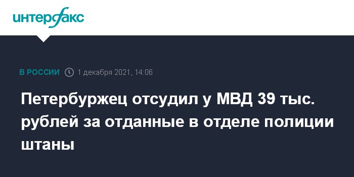 Петербуржец отсудил у МВД 39 тыс. рублей за отданные в отделе полиции штаны