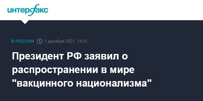 Москва. 1 декабря. INTERFAX.RU - Президент РФ Владимир Путин заявил о распространении в мире "вакцинного национализма".