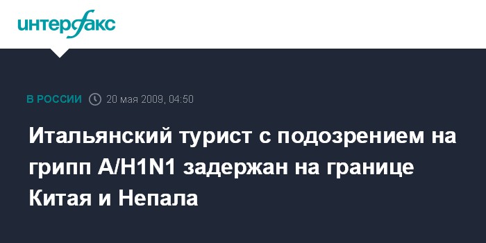 Пекин. 20 мая. ИНТЕРФАКС-КИТАЙ - Гражданин Италии, который прибыл в Тибетский автономный район Китая в группе иностранных туристов из Непала, госпитализирован с подозрением на грипп A/H1N1, сообщило во вторник вечером министерство здравоохранения КНР.