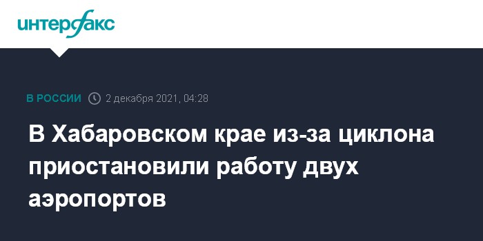 "Аэропорт Николаевска-на-Амуре закрыт до 9:00 3 декабря в связи с очисткой взлетно-посадочной полосы. Аэропорт Комсомольска-на-Амуре закрыт по той же причине до 12:00 2 декабря", - говорится в сообщении.