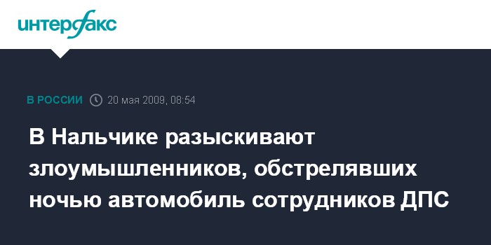 Москва. 20 мая. INTERFAX.RU - В Нальчике (Кабардино-Балкария) утром в среду продолжаются мероприятия по розыску и задержанию злоумышленников, обстрелявших накануне служебный автомобиль сотрудников ДПС УВД по городу.