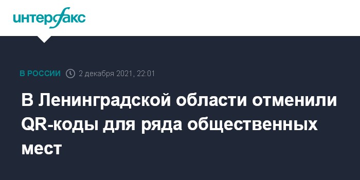 В Ленобласти система QR-кодов для посещения объектов развлечений и досуга, таких как кинотеатры, театры и концертные организации, передвижные цирки-шапито, гостиницы, бассейны, спортивные организации и музеи, действовала с 30 октября. Работа ночных клубов, дискотек, концертных организаций была запрещена, как и проведение массовых мероприятий.