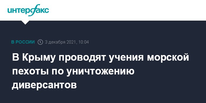 Москва. 3 декабря. INTERFAX.RU - Уничтожение диверсионно-разведывательных групп условного противника отрабатывают более 500 военнослужащих соединения морской пехоты в ходе учений, которые идут на Крымском полуострове, сообщил в пятницу Черноморский флот (ЧФ).