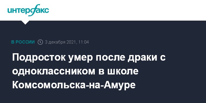 Москва. 3 декабря. INTERFAX.RU - Проверка проводится в школе Комсомольска-на-Амуре в связи со смертью ученика после конфликта с одноклассником, возбуждены уголовные дела, сообщает в пятницу прокуратура Хабаровского края.