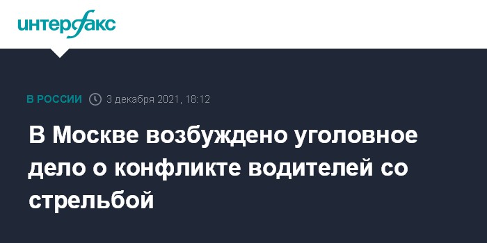 Москва. 3 декабря. INTERFAX.RU - По факту дорожного конфликта со стрельбой в центре Москвы возбуждено уголовное дело о хулиганстве (статья 213 УК), сообщила представитель МВД России Ирина Волк.