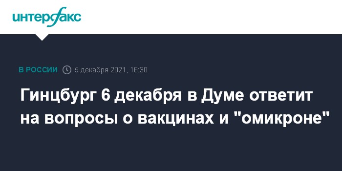 Гинцбург 6 декабря в Думе ответит на вопросы о вакцинах и "омикроне"