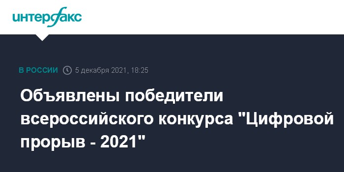 Москва. 5 декабря. INTERFAX.RU - Завершился финал третьего сезона всероссийского конкурса "Цифровой прорыв – 2021" – флагманского проекта президентской платформы "Россия – страна возможностей". 251 команда со всей России соревновалась в Иннополисе и 14 региональных ИТ– хабах, а также в онлайн– формате. 36 лучших команд разделили призовой фонд в размере 24 млн рублей. Также были присуждены 7 грантов от партнёров – суммарно более 2 млн рублей.