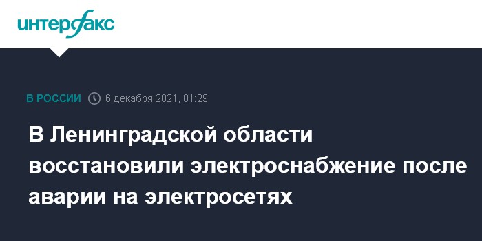 Москва. 6 декабря. INTERFAX.RU - Сотрудники "Россети Ленэнерго" восстановили подачу электричества в Кировске, Шлиссельбурге, Павлово, Отрадном и Мге (Ленинградская область) после аварии на электросетях, сообщили в понедельник "Интерфаксу" в пресс-службе компании.