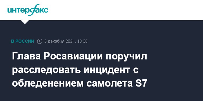 Москва. 6 декабря. INTERFAX.RU - Руководитель Росавиации Александр Нерадько поручил провести расследование обстоятельств и причин серьезного авиаинцидента, связанного с обледенением самолета Airbus 320neo авиакомпании S7, выполнявшего 2 декабря рейс Магадан - Новосибирск.