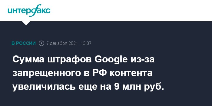 Сумма штрафов Google из-за запрещенного в РФ контента увеличилась еще на 9 млн руб.