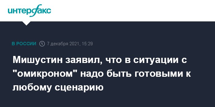 Он добавил: "Пока нет полной ясности, как он (штамм "омикрон" - ИФ) повлияет на общую картину, надо быть готовыми к любому сценарию".