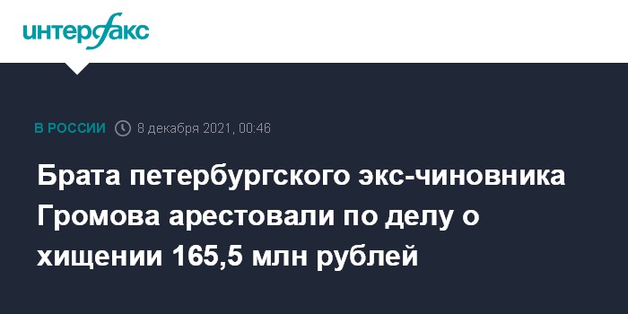 Брата петербургского экс-чиновника Громова арестовали по делу о хищении 165,5 млн рублей