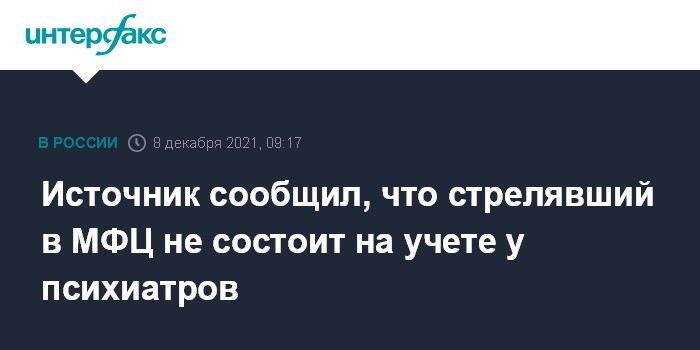 Источник сообщил, что стрелявший в МФЦ не состоит на учете у психиатров