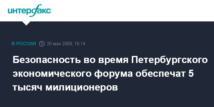 Москва. 20 мая. INTERFAX.RU - Безопасность во время XIII Петербургского международного экономического форума будут обеспечивать 5 тысяч сотрудников милиции, сообщил журналистам в среду глава ГУВД города Владислав Пиотровский. "Усиленный вариант несения службы во время форума у нас будет - приблизительно пять тысяч человек личного состава ГУВД Петербурга. Кроме того, будут дополнительно приданные силы со всех регионов России", - сказал Пиотровский. Он отметил, что основной зоной работы сотрудников милиции во время форума станет Васильевский остров, а также центральные магистрали и трассы города.