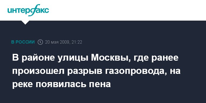 Москва. 20 мая. INTERFAX.RU - На западе Москвы в русле реки Очаковка в среду вечером обнаружена пена неизвестного происхождения на площади 400 кв. метров, сообщил "Интерфаксу" источник в правоохранительных органах.