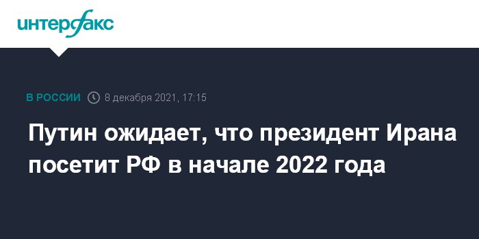Москва. 8 декабря. INTERFAX.RU - Президент РФ Владимир Путин рассчитывает, что его иранский коллега Ибрахим Раиси посетит Россию в начале следующего года.