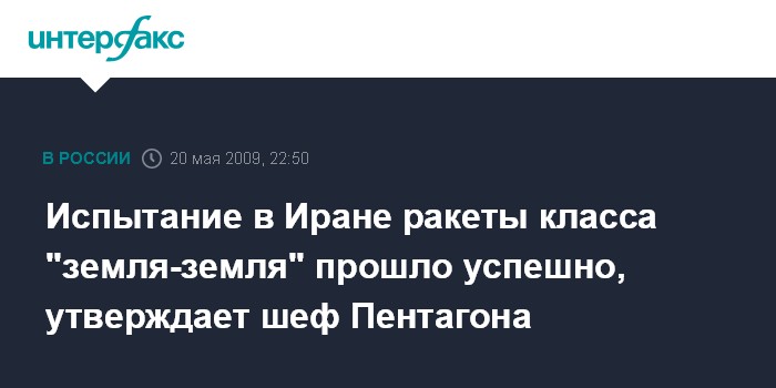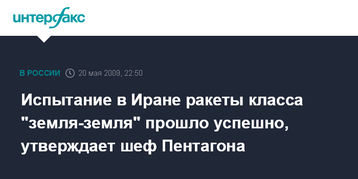 Вашингтон. 20 мая. ИНТЕРФАКС - Полученная Пентагоном информация свидетельствует об успешности проведенного Ираном в среду испытания ракеты класса "земля-земля", заявил министр обороны США Роберт Гейтс.