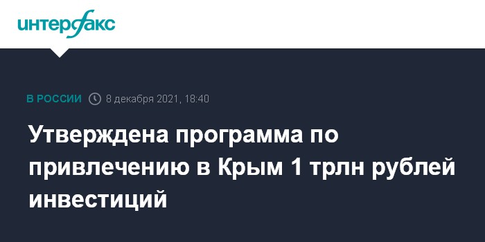 Москва. 8 декабря. INTERFAX.RU - Вице-премьер Марат Хуснуллин утвердил "дорожную карту" по привлечению 1 трлн рублей инвестиций в развитие Крыма, соответствующий документ опубликован на сайте правительства.