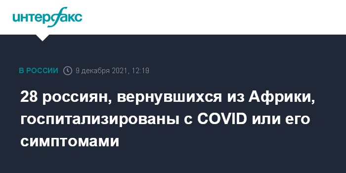 28 россиян, вернувшихся из Африки, госпитализированы с COVID или его симптомами
