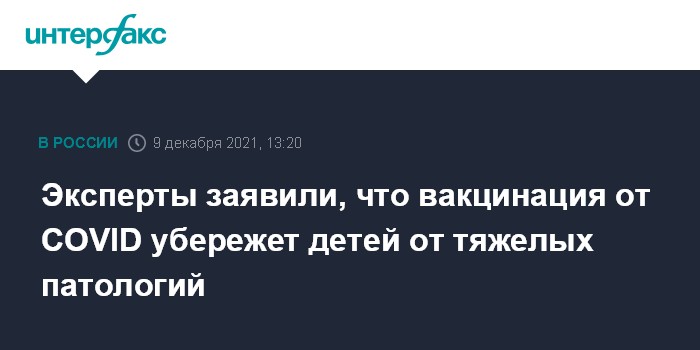 Москва. 9 декабря. INTERFAX.RU - Вакцинация детей от коронавирусной инфекции COVID-19 поможет защитить как от снижения познавательных функций, так и от развития мультисистемного воспалительного синдрома и тяжелых патологий, заявляют эксперты Минздрава и Федерального медико-биологического агентства.
