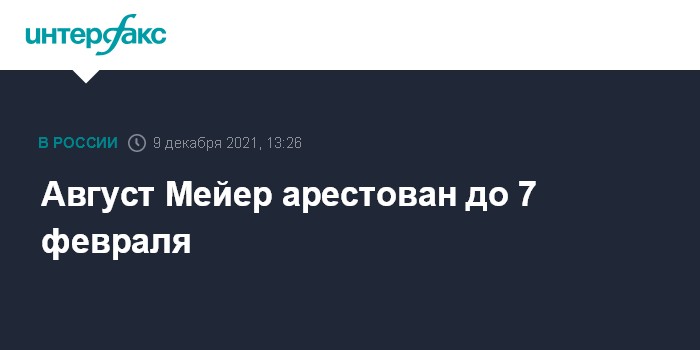 Москва. 9 декабря. INTERFAX.RU - Московский суд Петербурга до 7 февраля арестовал бизнесмена Августа Мейера по делу о мошенничестве в особо крупных размерах, сообщила пресс-служба городских судов.