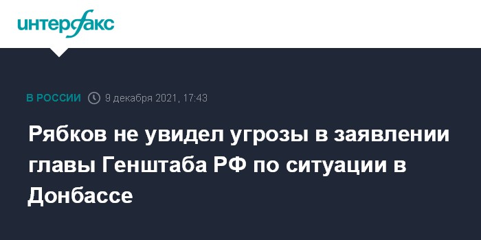 Москва. 9 декабря. INTERFAX.RU - Слова начальника Генерального штаба Вооруженных сил РФ Валерия Герасимова о том, что любые провокации украинских властей по силовому урегулированию проблем Донбасса будут пресекаться, не были угрозой кому-либо, заявил замглавы МИД РФ Сергей Рябков.