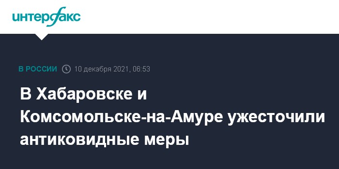Москва. 10 декабря. INTERFAX.RU - Новый пакет жестких противоэпидемических мер вводится в крупных городах Хабаровского края - Хабаровске и Комсомольске-на-Амуре, сообщает пресс-служба правительства региона.