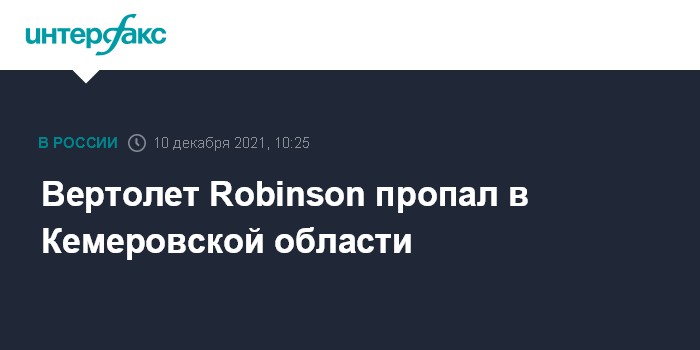 Москва. 10 декабря. INTERFAX.RU - Вертолет Robinson R-66 перестал выходить на связь после вылета из Новокузнецка (Кемеровская область), сообщил "Интерфаксу" информированный источник.