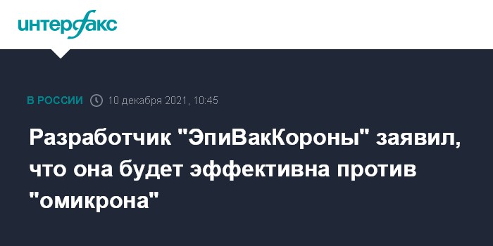 Москва. 10 декабря. INTERFAX.RU - Вакцина "ЭпиВакКорона" будет эффективна против "омикрон"-штамма коронавируса, на практике это проверят в ближайшее время, сообщил гендиректор центра "Вектор" Роспотребнадзора Ринат Максютов.