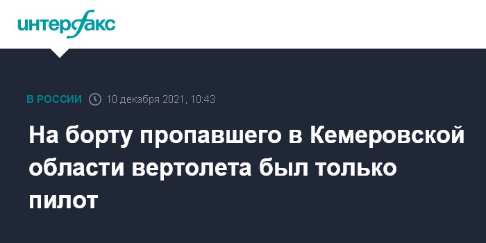 На борту пропавшего в Кемеровской области вертолета был только пилот