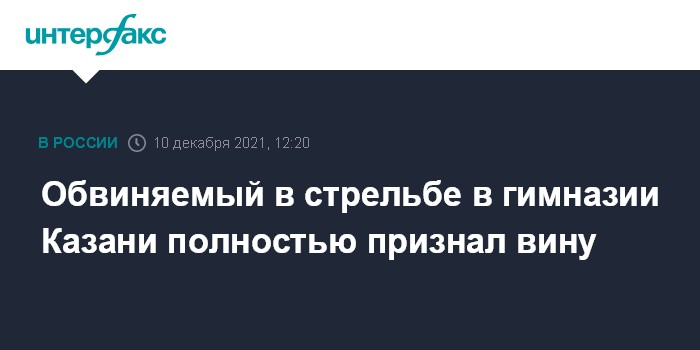 Москва. 10 декабря. INTERFAX.RU - Устроившему стрельбу в казанской гимназии весной этого года Ильназу Галявиеву предъявлено окончательное обвинение в убийстве двух и более лиц, изготовлении взрывчатых веществ и взрывного устройства, он признал вину, сообщила официальный представитель Следственного комитета (СК) Светлана Петренко.