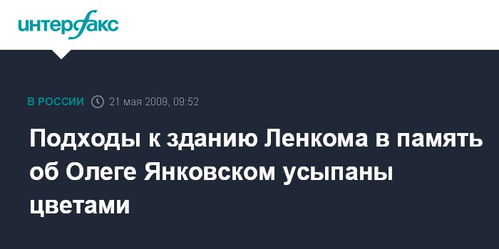 Москва. 21 мая. INTERFAX.RU - Россияне усыпали цветами тротуар рядом со зданием театра "Ленком" на Малой Дмитровке в Москве в память о народном артисте СССР Олеге Янковском, передает корреспондент "Интерфакса" в четверг.