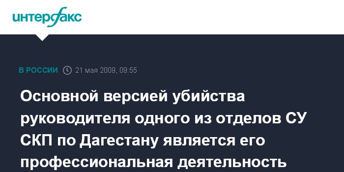 Москва. 21 мая. INTERFAX.RU - По факту убийства руководителя отдела по расследованию особо важных дел Следственного управления СКП по Дагестану возбуждено уголовное дело, сообщил "Интерфаксу" официальный представитель СКП РФ Владимир Маркин.
