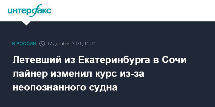 Летевший из Екатеринбурга в Сочи лайнер изменил курс из-за неопознанного судна