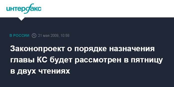 Москва. 21 мая. INTERFAX.RU - Госдума в пятницу рассмотрит сразу во втором и в третьем чтениях президентский законопроект, изменяющий процедуру назначения председателя Конституционного суда (КС) и двух его заместителей, сообщил журналистам в четверг спикер Борис Грызлов.