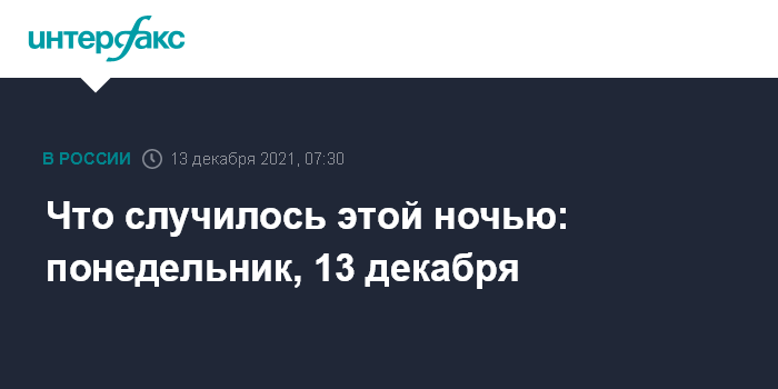 Москва. 13 декабря. INTERFAX.RU - Краткая сводка событий, произошедших к утру: