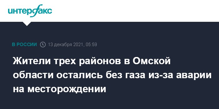 Москва. 13 декабря. INTERFAX.RU - Компания "Тевризнефтегаз" ограничила подачу потребителям природного газа в трех северных районах Омской области из-за аварийной ситуации на газоконденсатном месторождении, сообщает пресс-служба регионального Минэнерго.