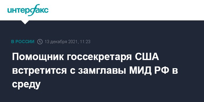 Помощник госсекретаря США встретится с замглавы МИД РФ в среду