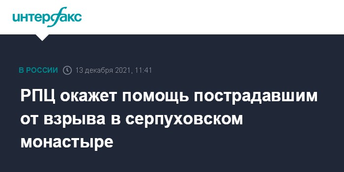 РПЦ окажет помощь пострадавшим от взрыва в серпуховском монастыре