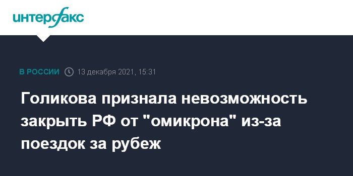 Голикова признала невозможность закрыть РФ от "омикрона" из-за поездок за рубеж