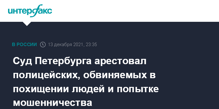 Суд Петербурга арестовал полицейских, обвиняемых в похищении людей и попытке мошенничества