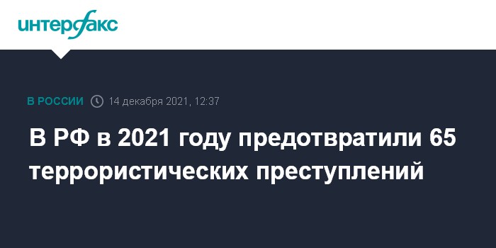 В РФ в 2021 году предотвратили 65 террористических преступлений