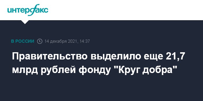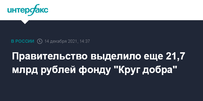 Правительство выделило еще 21,7 млрд рублей фонду "Круг добра"