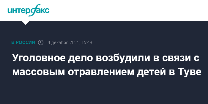 Уголовное дело возбудили в связи с массовым отравлением детей в Туве