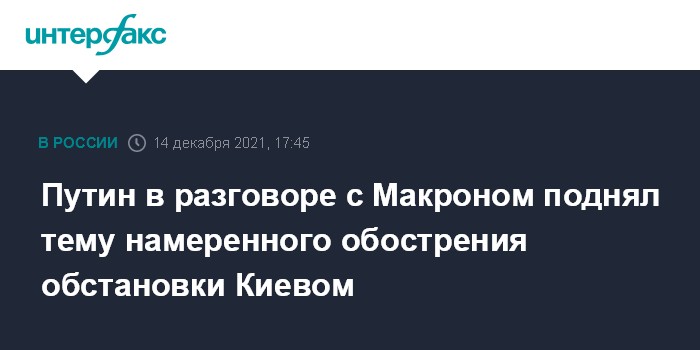 Путин в разговоре с Макроном поднял тему намеренного обострения обстановки Киевом