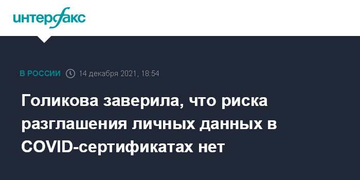 Голикова заверила, что риска разглашения личных данных в COVID-сертификатах нет