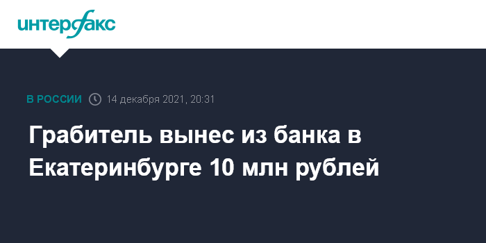 Грабитель вынес из банка в Екатеринбурге 10 млн рублей