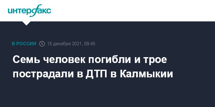 Москва. 15 декабря. INTERFAX.RU - Автоавария в Яшкульском районе Калмыкии на 272 км федеральной автодороги Р216 унесла жизни семи человек, сообщили в среду "Интерфаксу" в МВД по республике.
