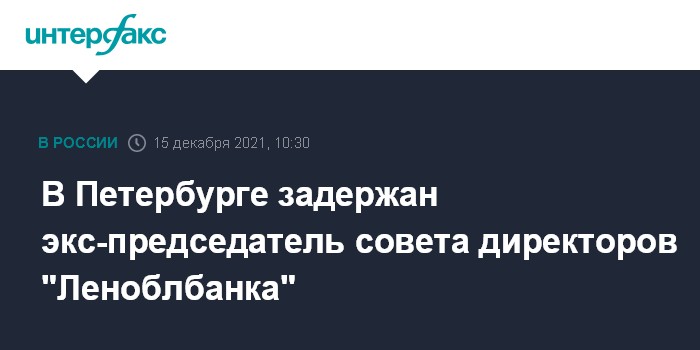 Москва. 15 декабря. INTERFAX.RU - Полиция Санкт-Петербурга задержала Александра Попова – бывшего председателя совета директоров и основного бенефициара "Леноблбанка", лишенного лицензии в 2015 году, ему вменяется хищение более 200 млн рублей. Об этом сообщил "Интерфаксу" в среду информированный источник.