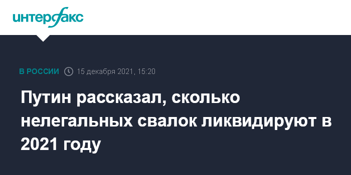 Путин рассказал, сколько нелегальных свалок ликвидируют в 2021 году
